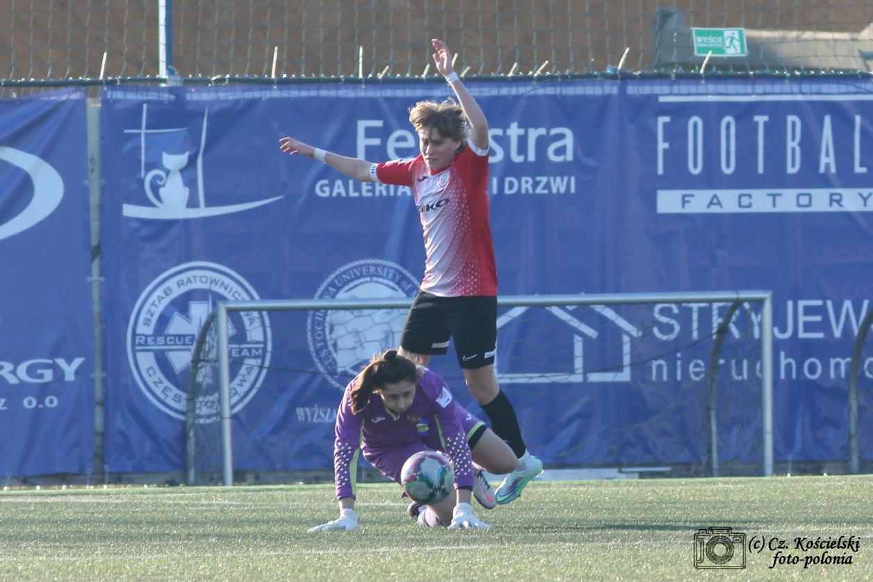 W niedzielne popołudnie o godzinie 15.30 przyszło nam się mierzyć na wyjeździe ze Skrą Częstochowa. Przed meczem wiedziałyśmy, że czeka nas bardzo trudne zadanie. Już w ubiegłej rundzie było bardzo ciężko o trzy punkty a grałyśmy przecież na własnym boisku. Ostatecznie, po trudnym meczu w Środzie Wielkopolskiej zwyciężyłyśmy 3:2. Dziś zespół Skry postawił nam bardzo trudne warunki. Mecz był zacięty. Zostawiłyśmy na boisku dużo zdrowia jednak nie udało się wywalczyć pełnej puli punktowej. Skra na własnym terenie grała mądrze. Długo utrzymywała się przy piłce zmuszając nas do biegania czego konsekwencją był spory ubytek sił. My zagrałyśmy trochę nerwowo i chaotycznie. Kluczowa była dokładność, która pozwoliłaby nam budować akcje ale ten element nie funkcjonował dziś u nas najlepiej. Robiłyśmy co w naszej mocy by tę grę sensownie poukładać ale nie udało się na tyle by pokonać dobrze zorganizowane w dniu dzisiejszym rywalki. Cały czas na plus w naszym zespole jest mimo wszystko konsekwencja. Staramy się i próbujemy korygować to co szwankuje i grać tak jak sobie zakładamy. Różnie nam to wychodzi ale nie boimy się. Dziś ambicji nam nie brakowało ale to było za mało by z Częstochowy wywieźć trzy punkty. Teraz czas na regenerację. W najbliższą środę czeka nas mecz 1/8 Pucharu Polski. O godzinie 14.30 na płycie głównej stadionu średzkiego będziemy podejmowały aktualne TOP piłkarstwa kobiecego. Aktualnego wicemistrza Polski piłkarki TME UKS SMS Łódź. Wszystkich kibiców już dziś zapraszamy na trybuny prosząc jednocześnie o doping i wsparcie.
